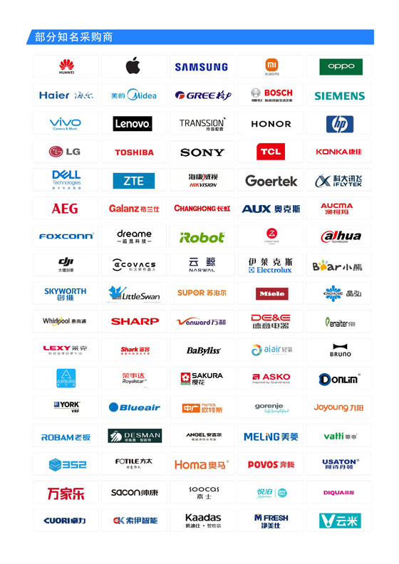 家电与消费电子新技术·新材料·新工艺 零部件、配套件、附件、结构件 智能家电·家庭物联网技术 智能控制器 电子元器件、芯片 外观件、塑料件、钣金件、五金件 制造与装配技术设备 包装技术设备与包装材料 原辅材料(金属、塑料、玻璃、磁材、电子材料等) 试验与测试技术设备 研发与设计 检测与认证服务 OEM加工 跨境电商服务、仓储物流服务 其它上下游及配套供应商 |
